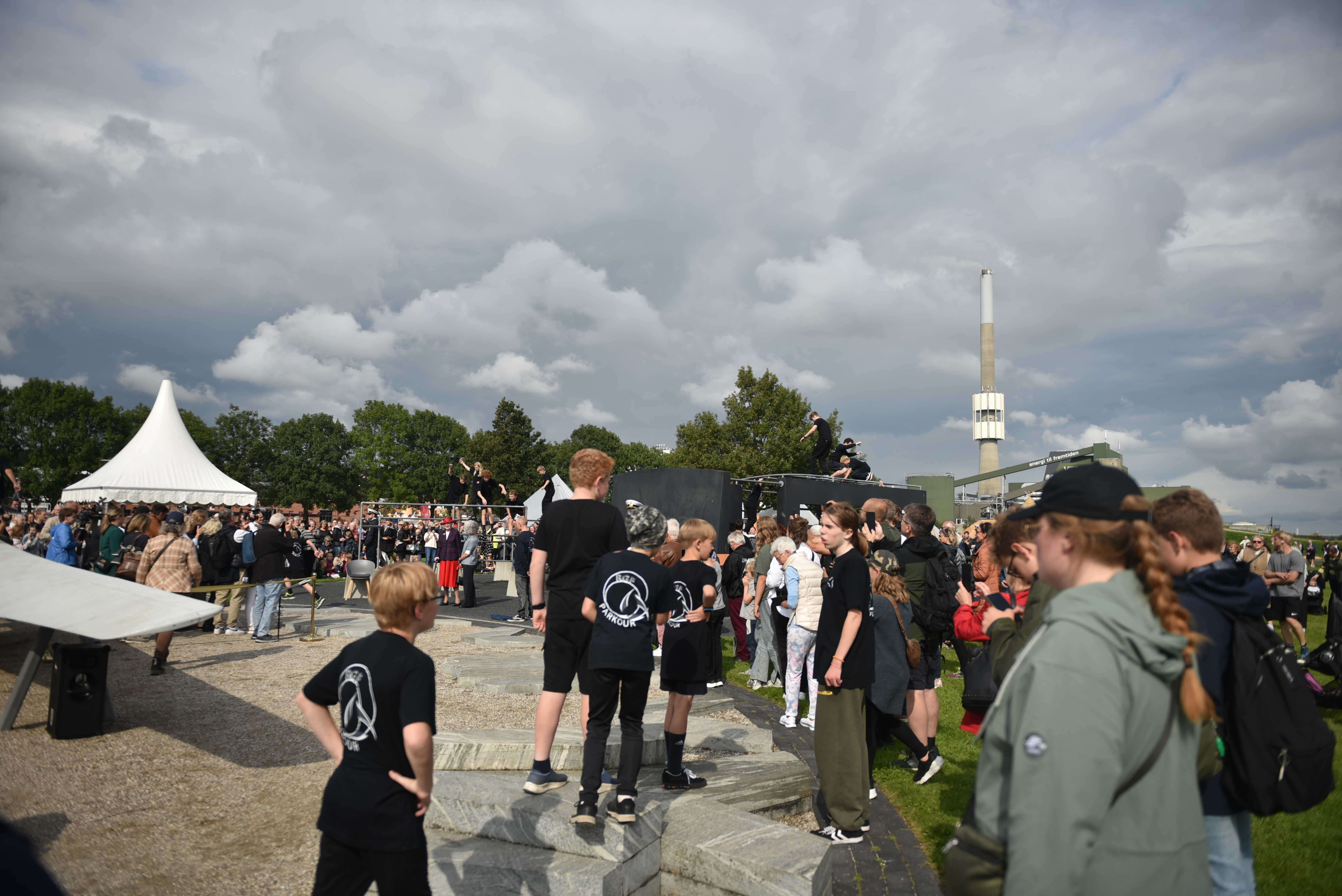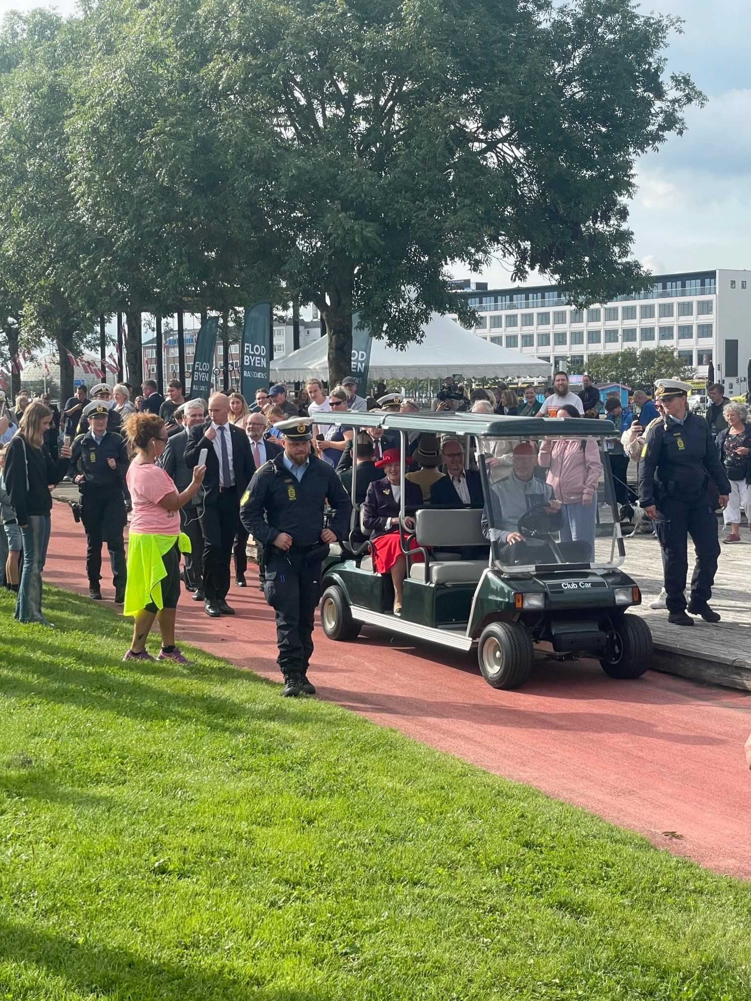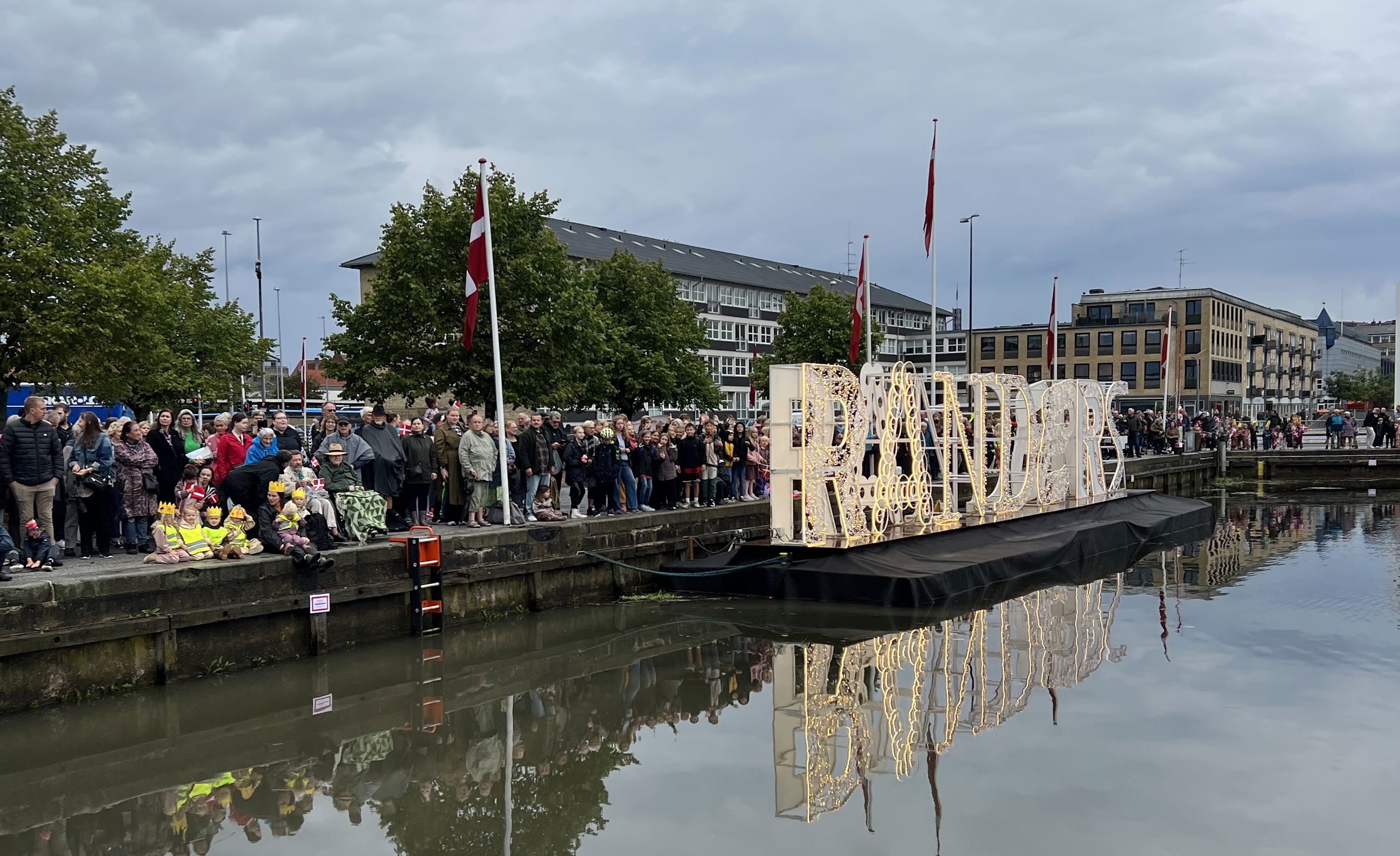 Publikum er klar til at tage imod Hendes Majestæt Dronningen på Randers Havn.