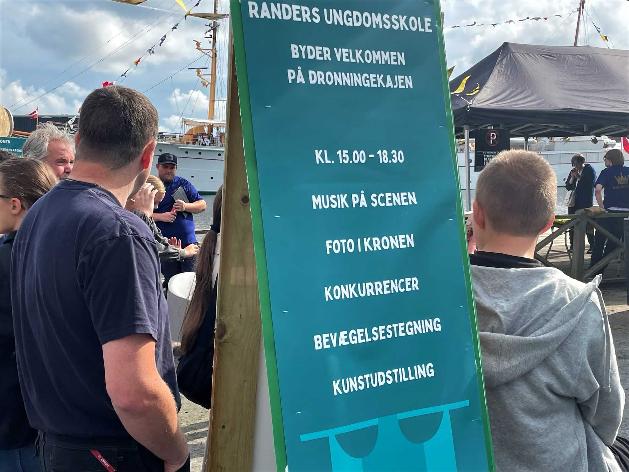 I anledning af H.M. Dronningens besøg er der gang i den ved Dronningekajen. Randers Ungdomsskole holder lounge med musik og god stemning frem til kl. 18.30. Tidligere i eftermiddag har der været rodyst i travaljer med Randers Roklub og mandskab fra Kongeskibet.