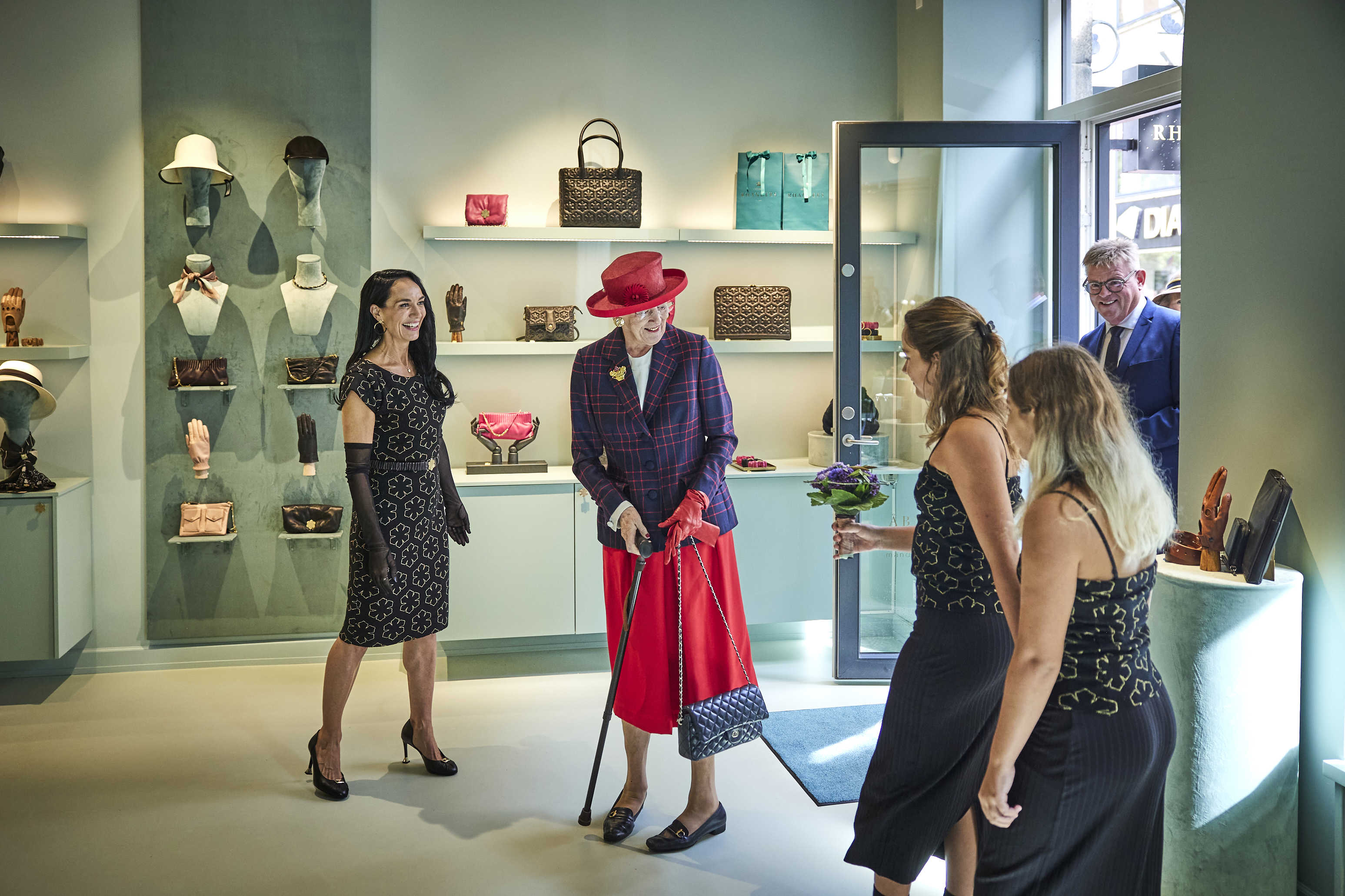 13.46: H.M. Dronningen besøgte Rhanders Handsker