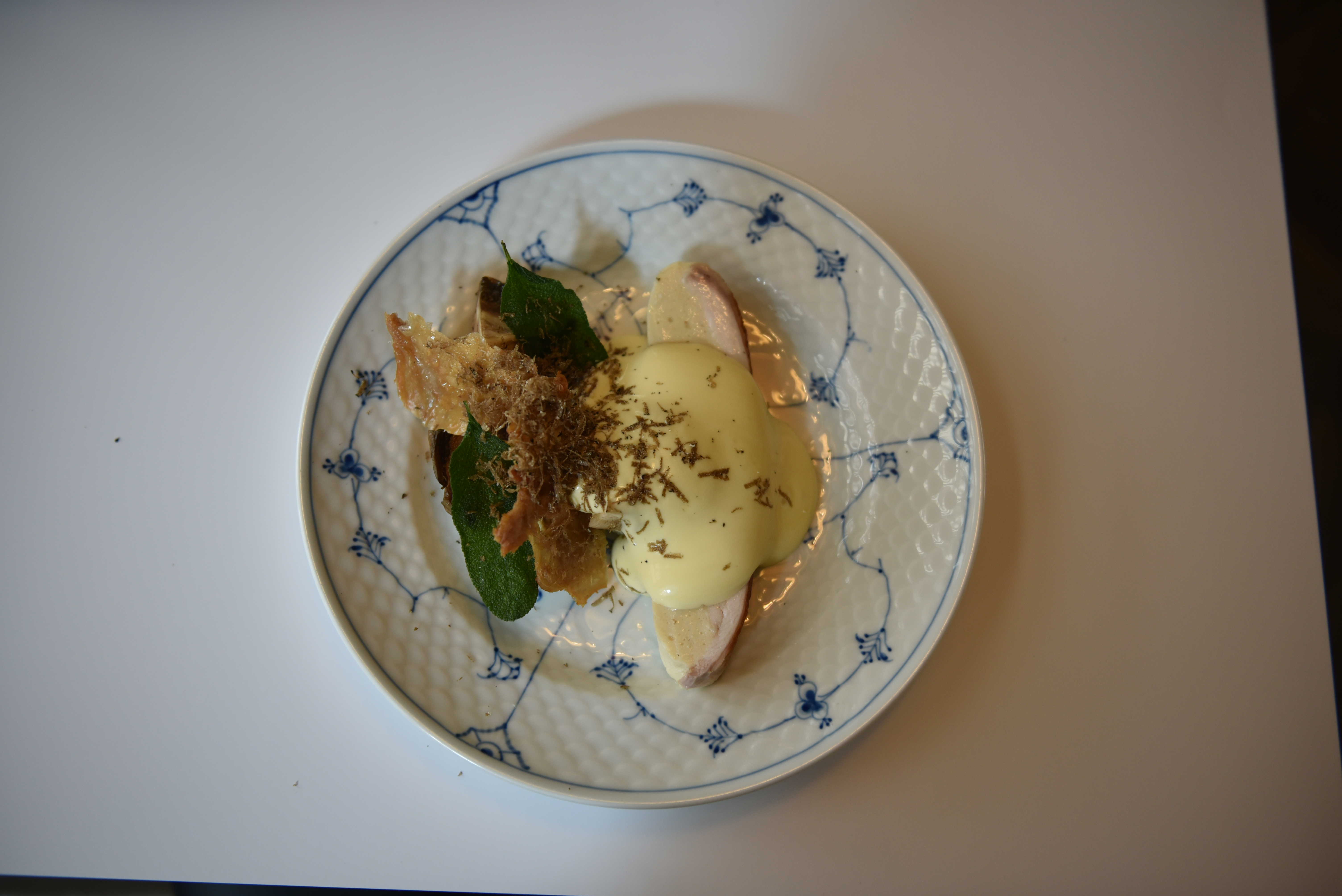 Hovedretten var farseret kyllingebryst og terrin på kyllingelår fra økologisk landkylling fra Rixgården med confiterede artiskokker fra Morgendagens Grøntsager, urter fra Rixgården, sommertrøffel og blanquet sauce.
