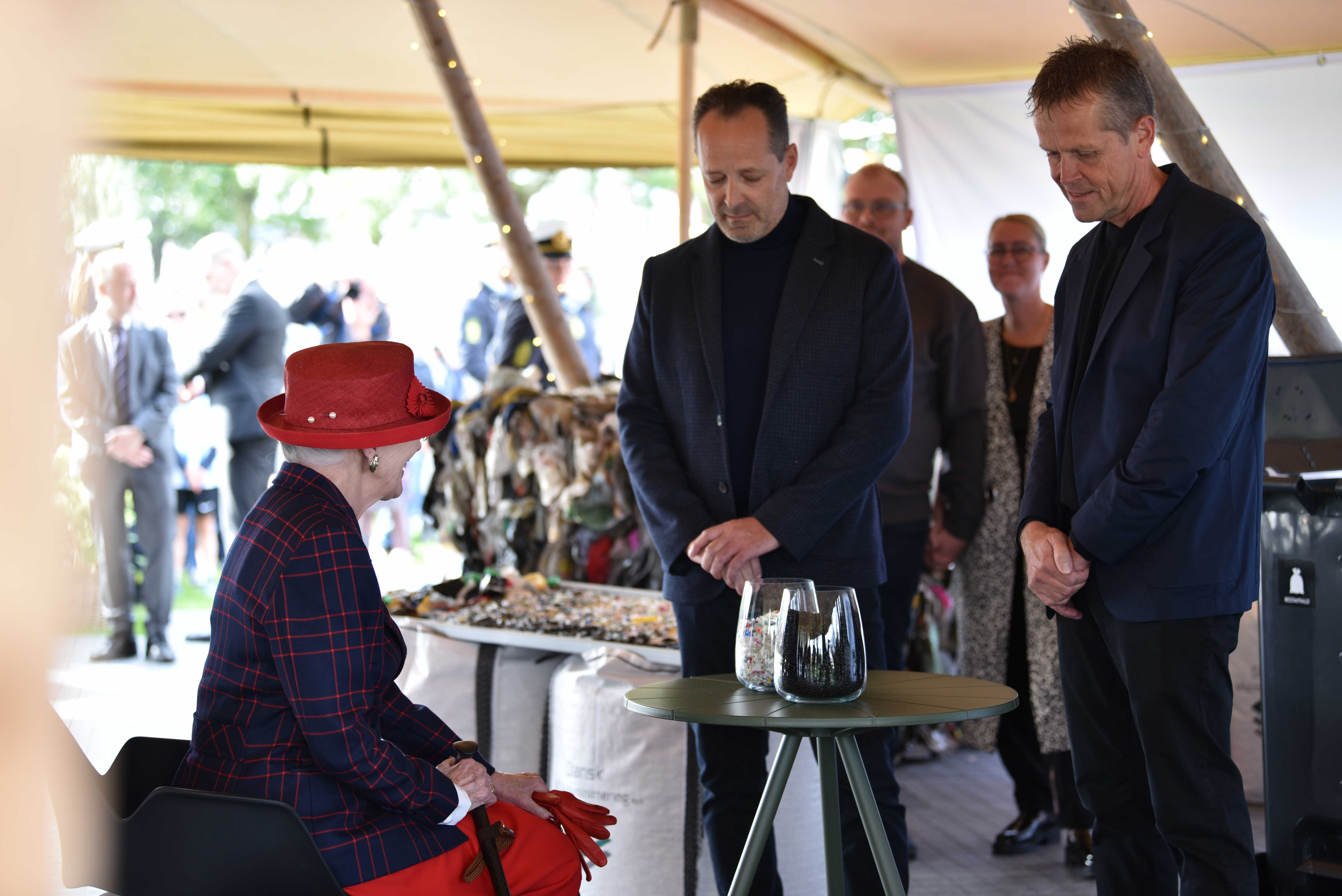 Hendes Majestæt Dronningen mødte tre forskellige repræsentanter for fremtidens erhverv og mere bæredygtige tilgang: Dansk Affaldsminimering, MV Plast og Cold Hand Winery.