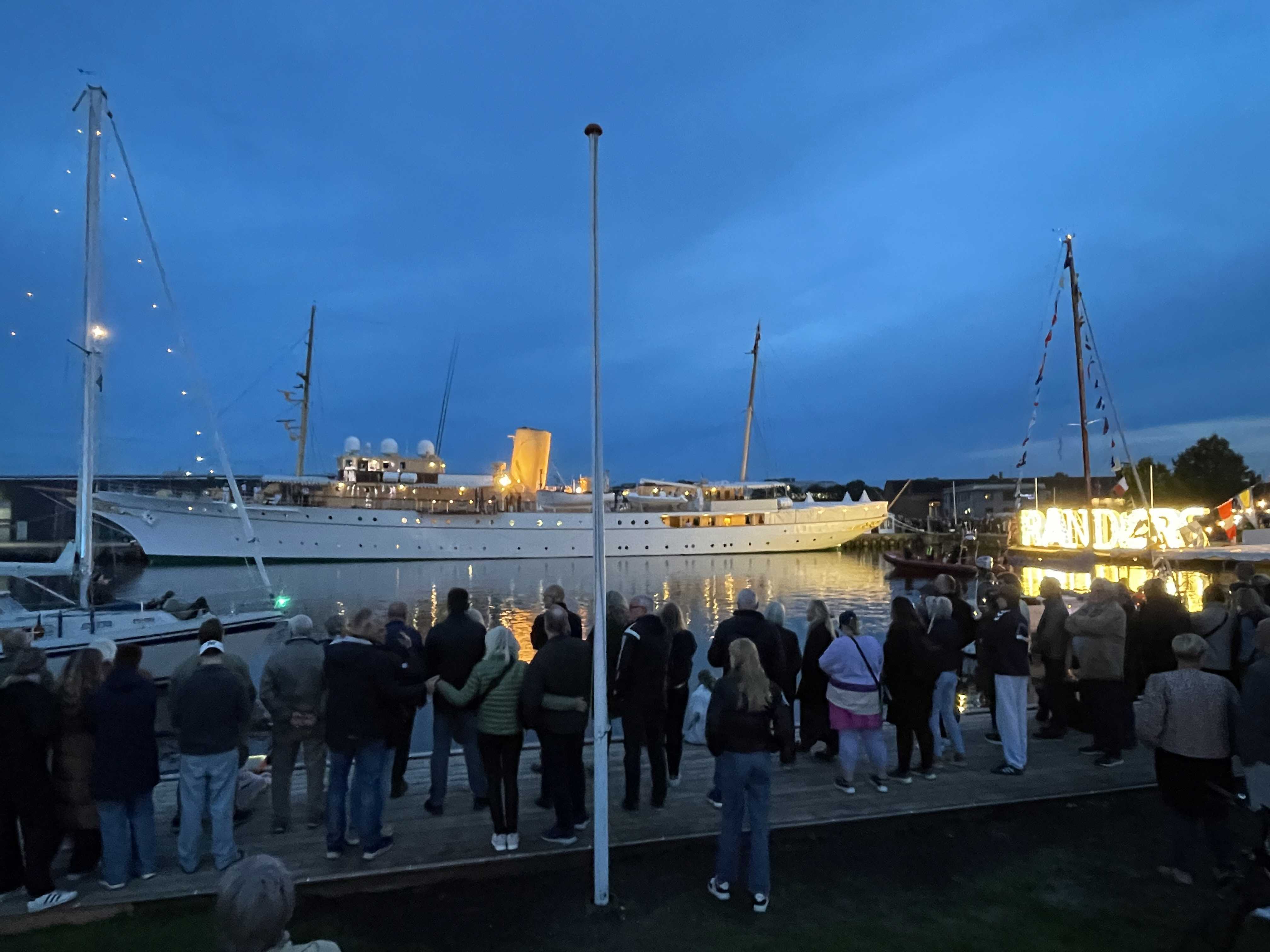 H.M. Dronningen er ankommet til Randers, hvor vi har en festlig dag foran os. Der var mange fremmødte på havnen for at vinke til Hendes Majestæt Dronningen.