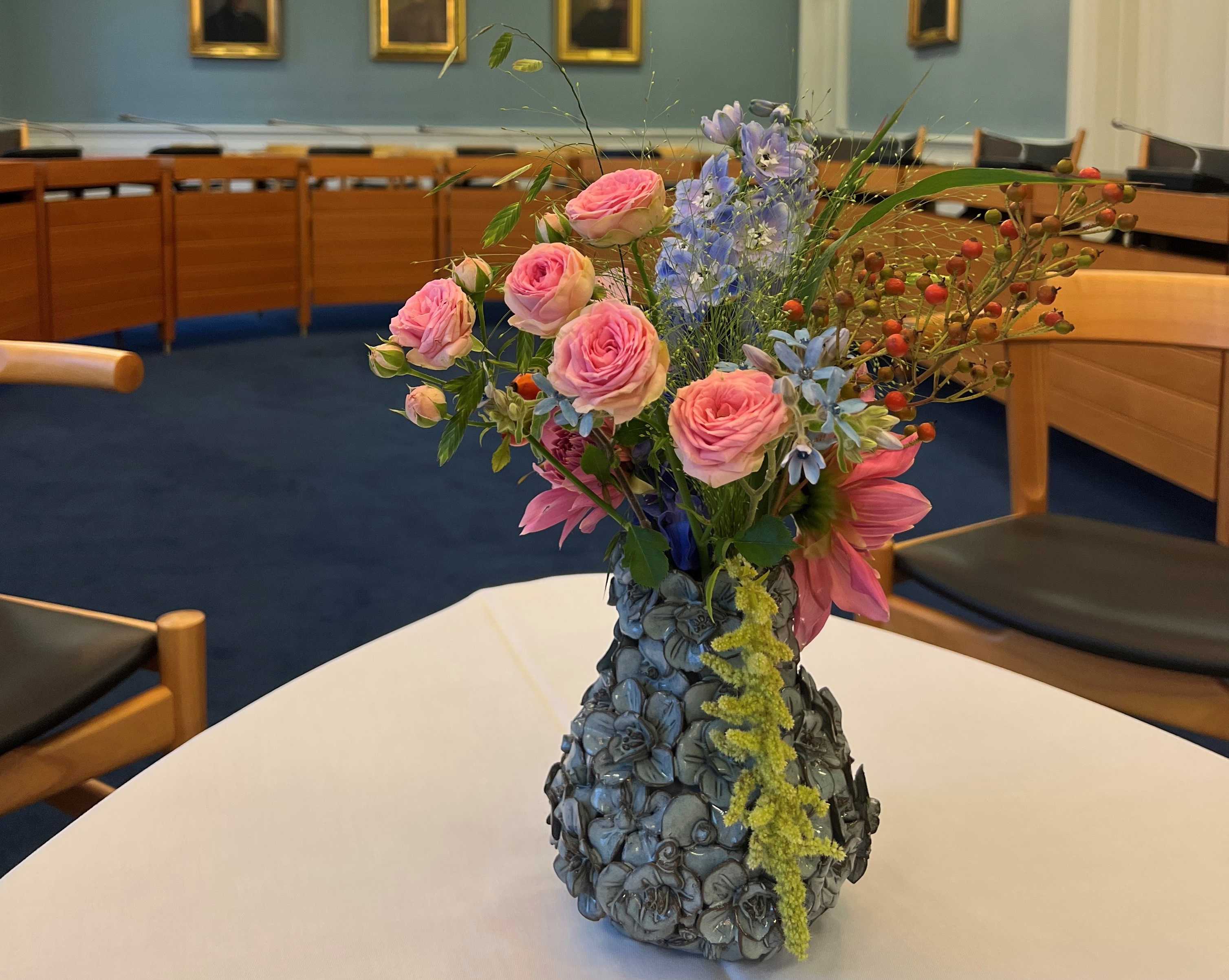 Ideen fra Feen har leveret blomsterarrangementer til Det Gamle Rådhus i anledning af H.M. Dronningens besøg.