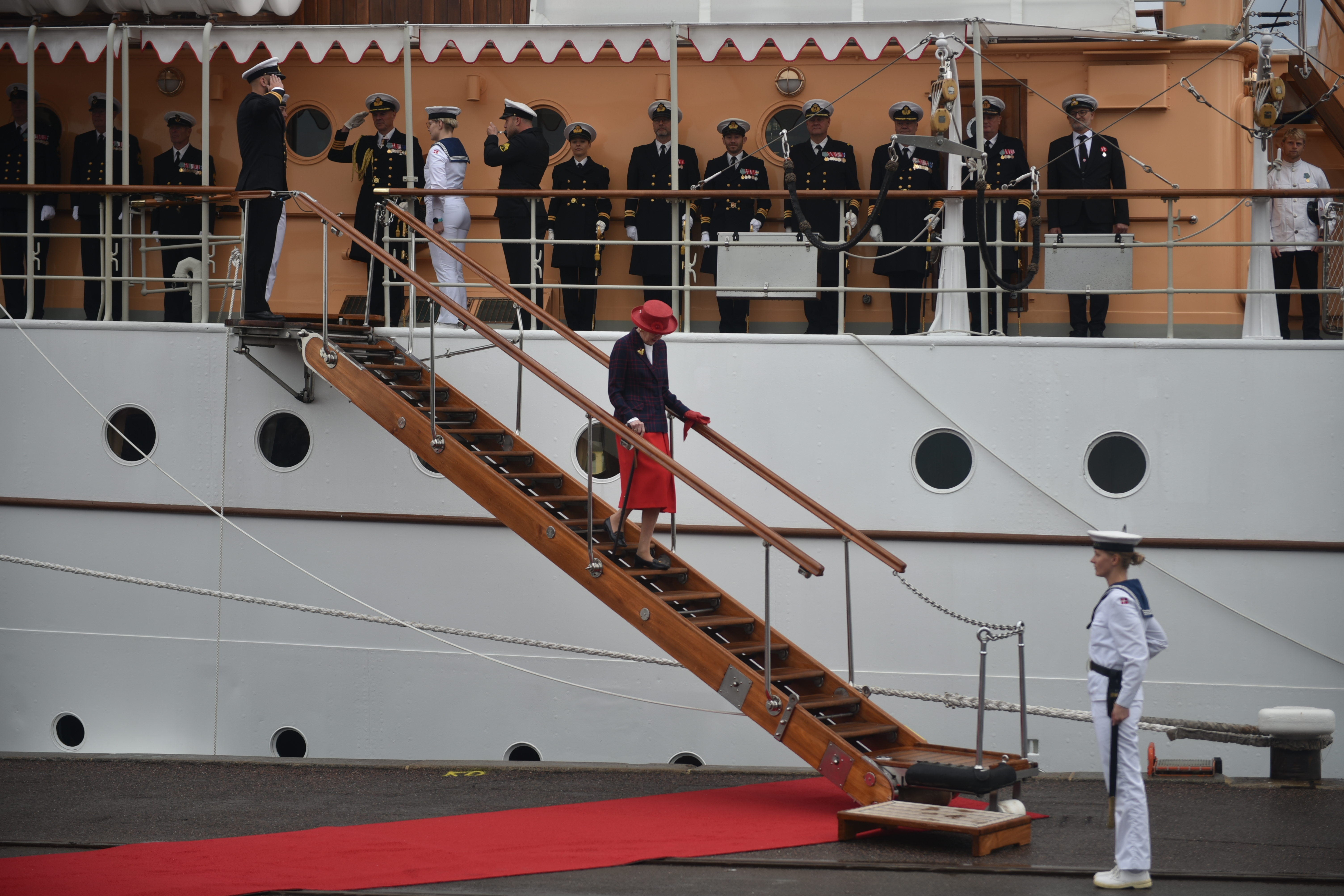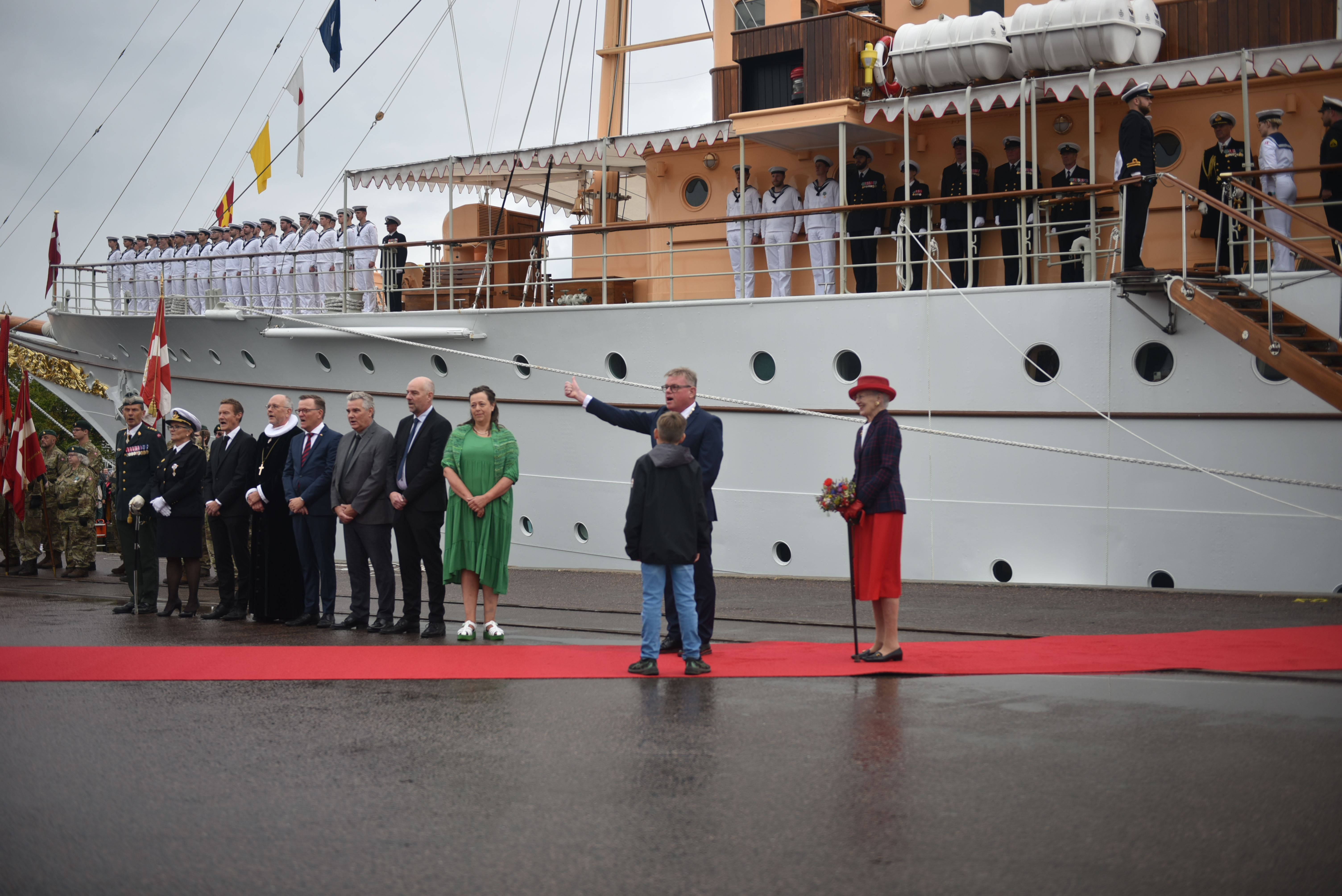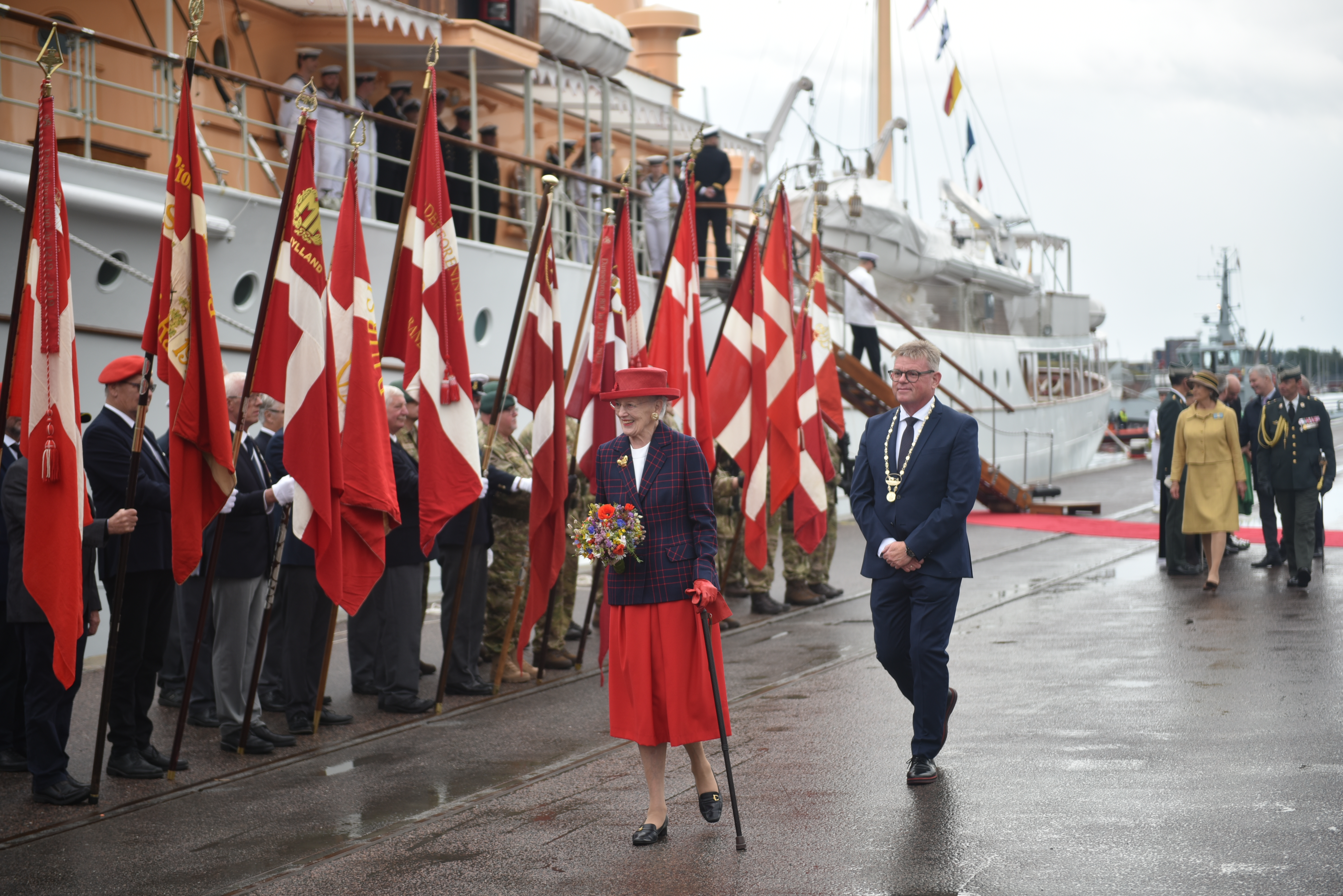 H.M. Dronningen holder reception på Kongeskibet Dannebrog for inviterede gæster fra kl. 19.30-21.00.