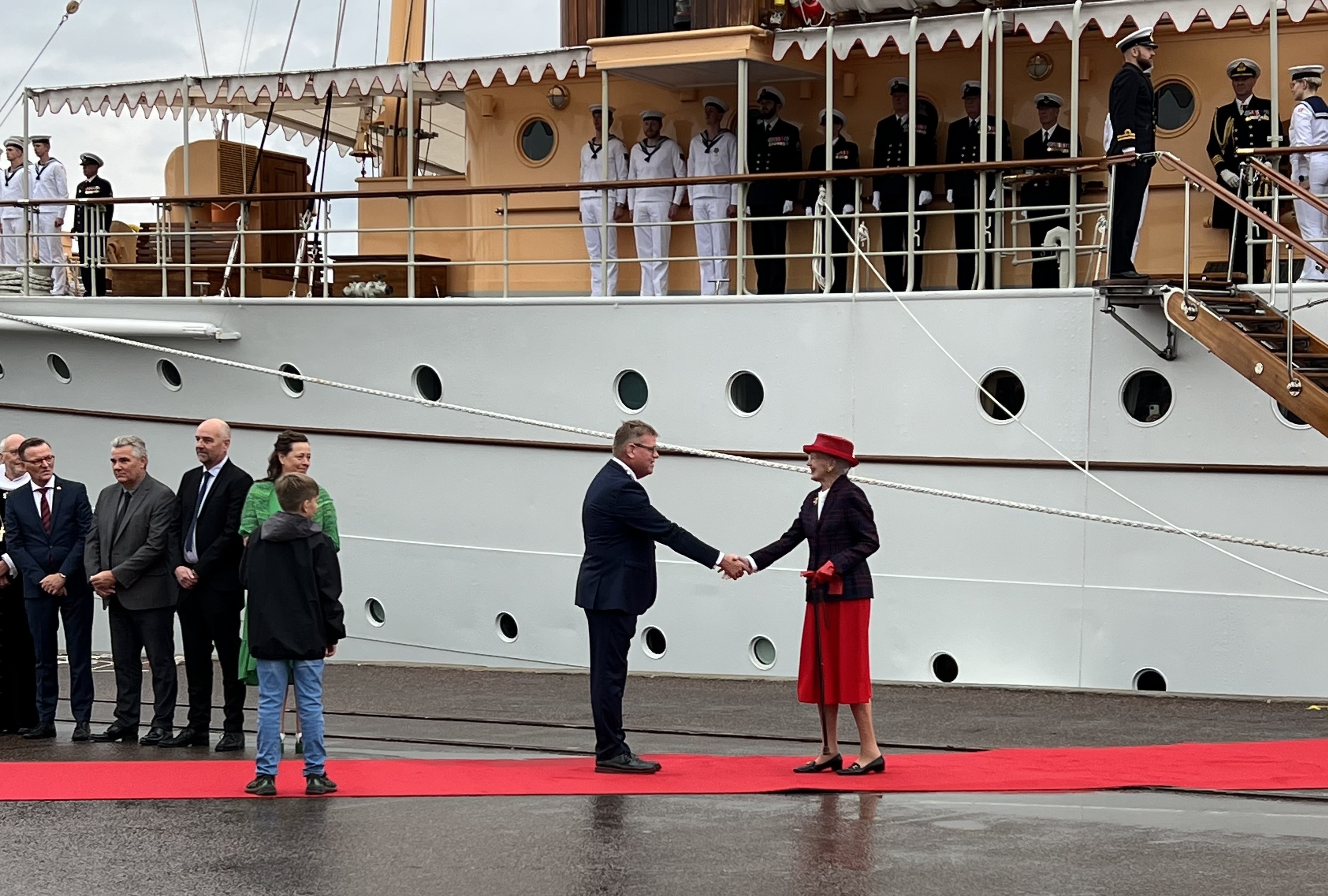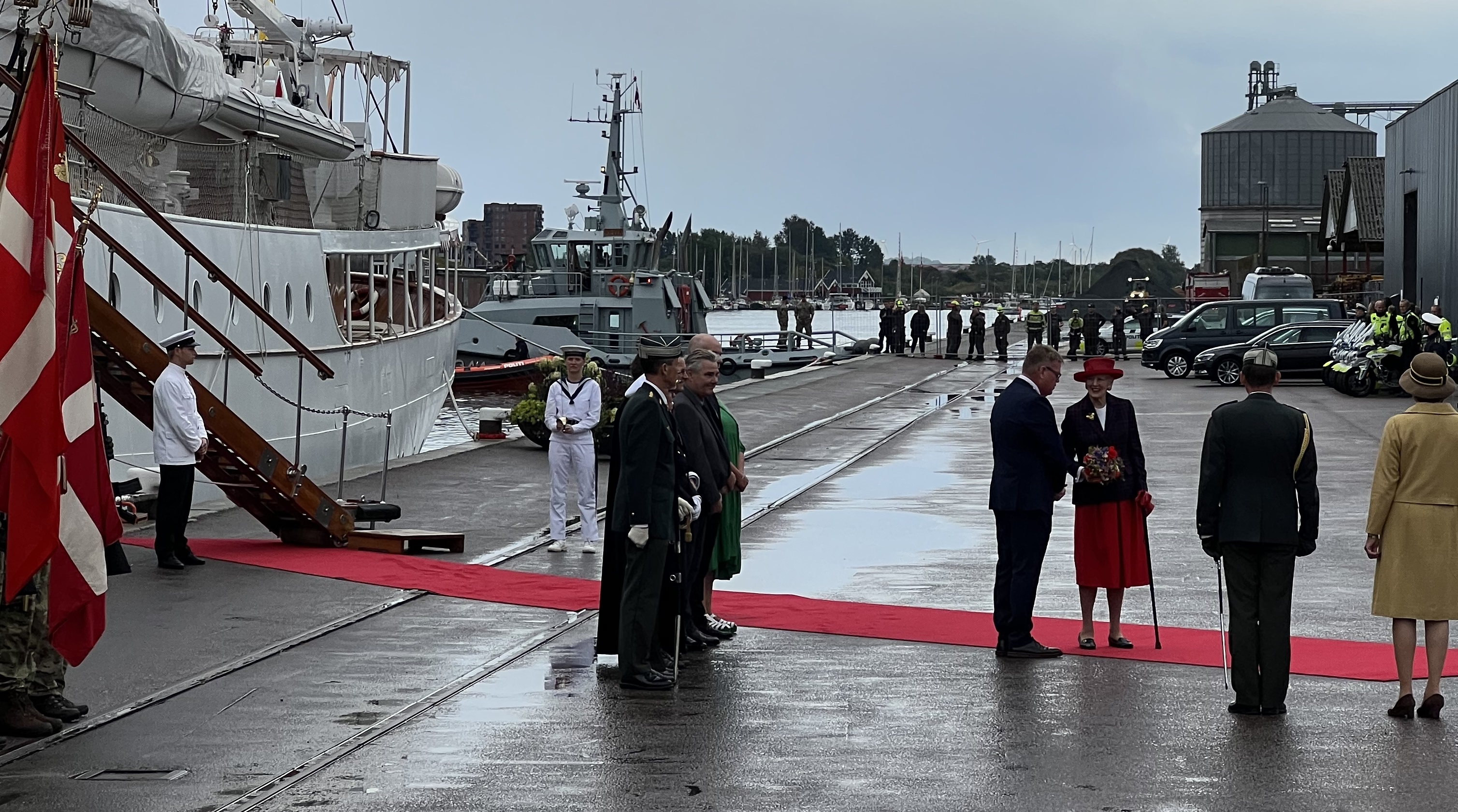H.M. Dronningen er ankommet til Randers, hvor vi har en festlig dag foran os. Der var mange fremmødte på havnen for at vinke til Hendes Majestæt Dronningen.