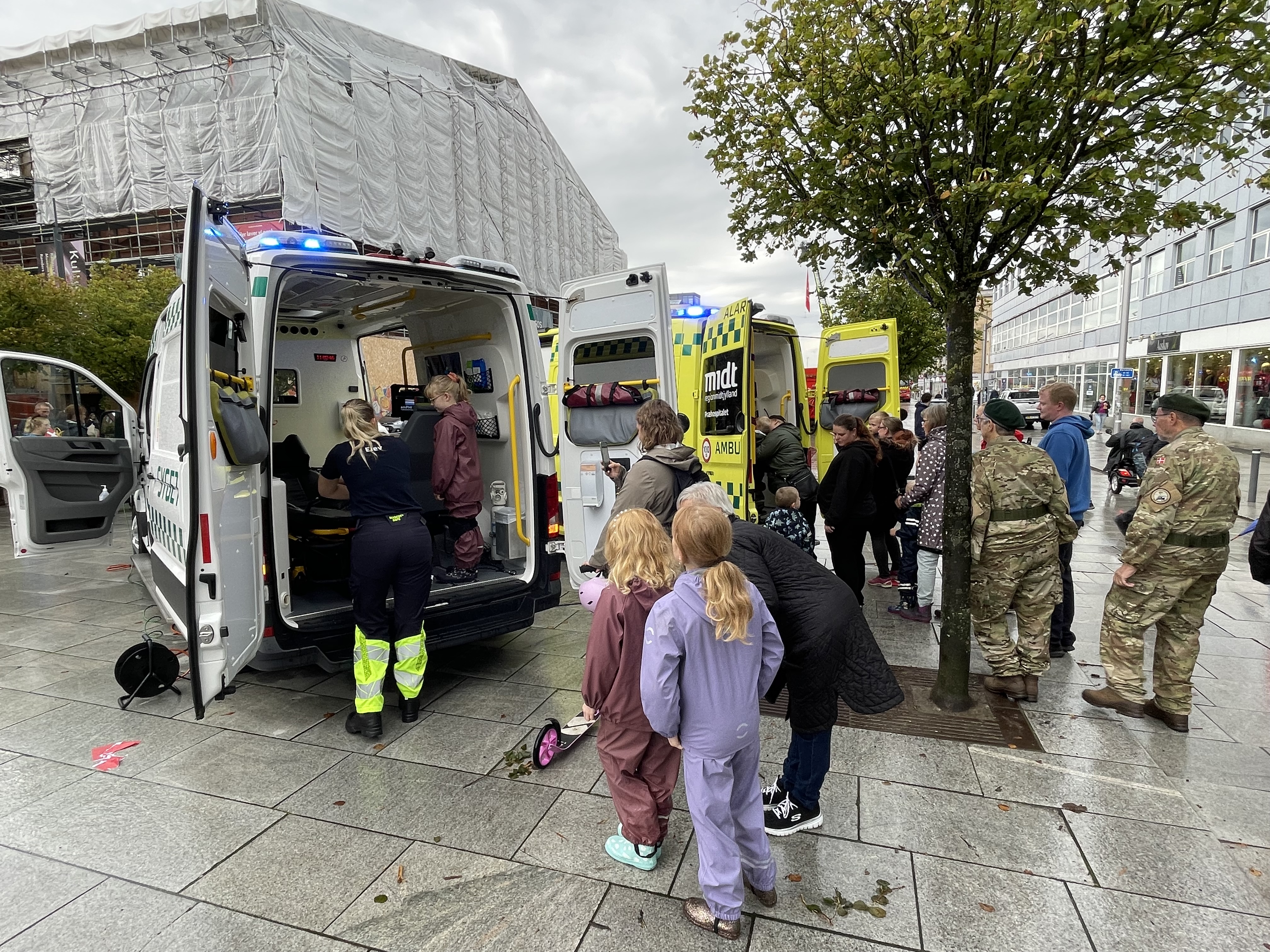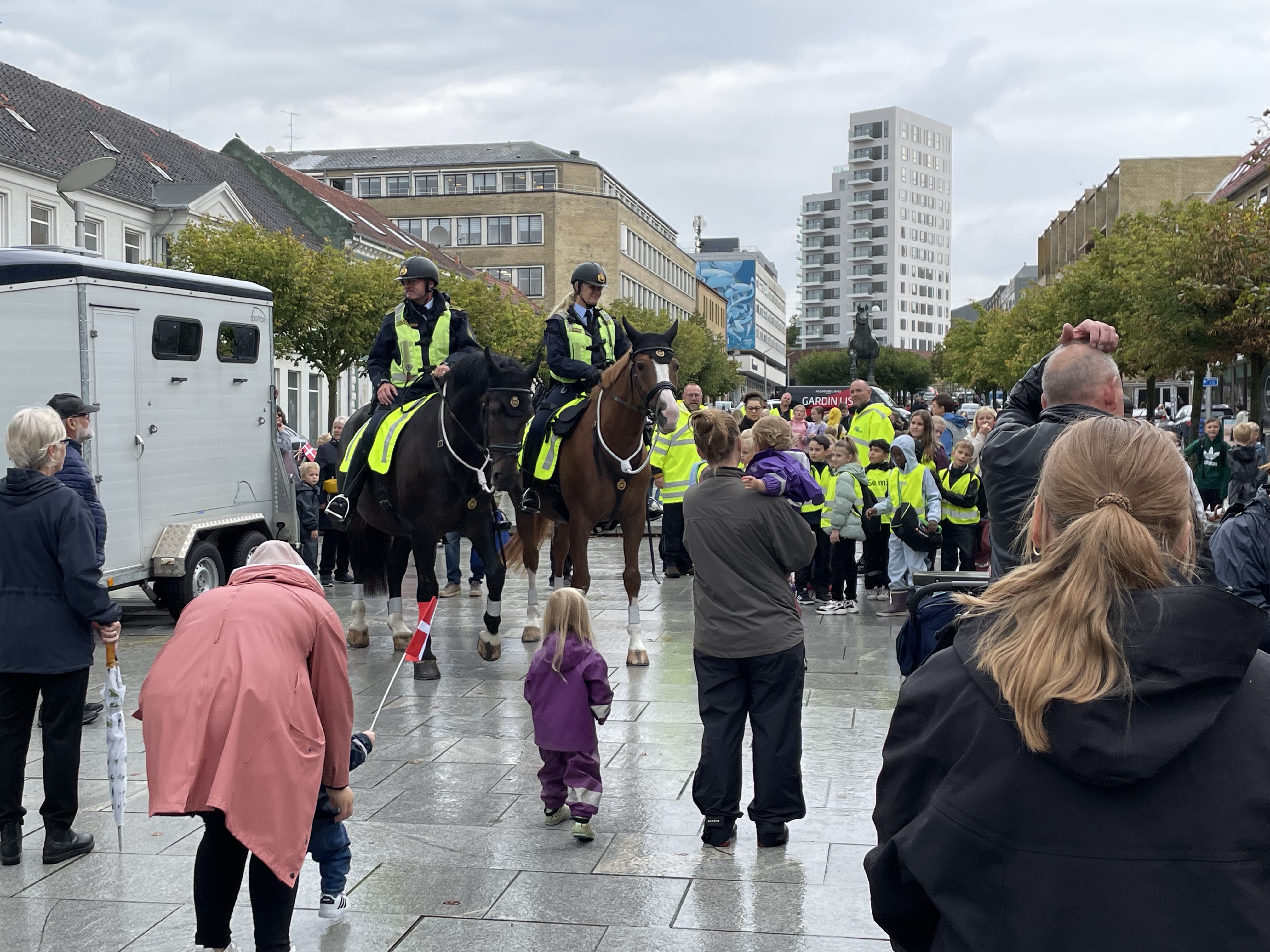 I anledning af H.M. Dronningens besøg er der Blå Blink på Østervold med ridende politi, ambulancer, stigebiler, kraner og hjemmeværnet.
