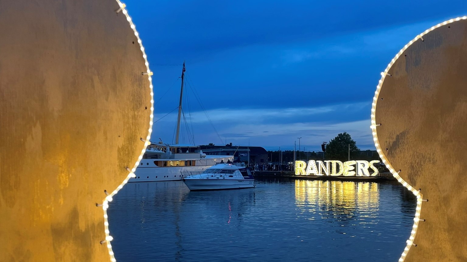 På den modsatte side af havnen ses de lysende Randers-bogstaver. De 18 meter lange, 3 meter høje og 60 centimeter dybe Randers-bogstaver medvirker sammen med illuminerede både langs kajkanten til at skabe et stemningsfuldt lyshav på Randers Havn.