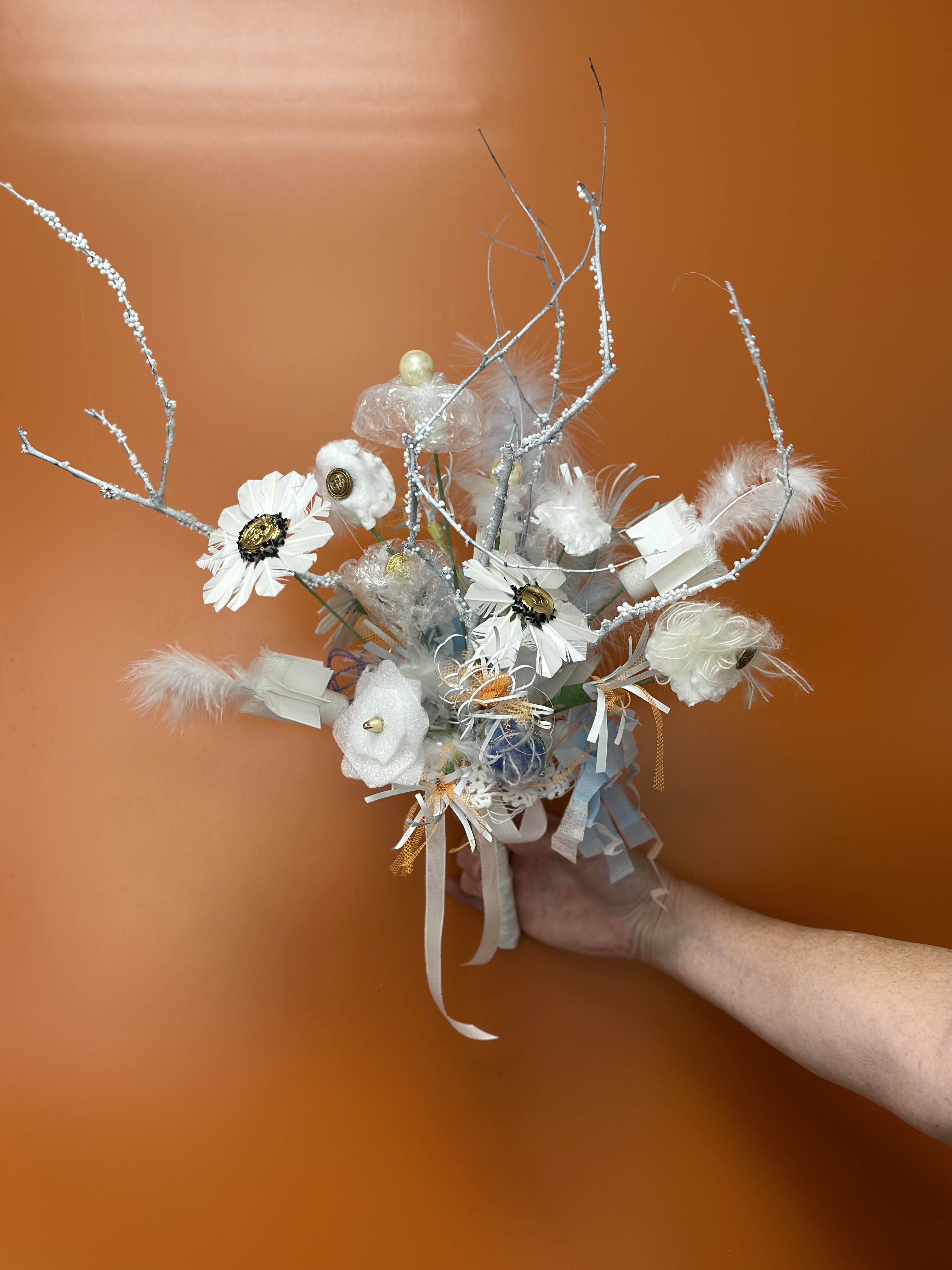 Buketten er bygget op omkring Kalmus-blomsten, der er af særlig symbolsk betydning for virksomheden, da Kalmus-planten har bestøvet både Randers by og Rhanders Handskers historie og arv i mere end 800 år. Rina Hansen har sammen med specialister fra kommunen været med ude ved byens vand for at høste Kalmus-planten, der på forunderlig vis er i blomst netop nu. Buketten er bundet med Grand Kalmus-silketørklæde og besmykket med en guld Kalmus.