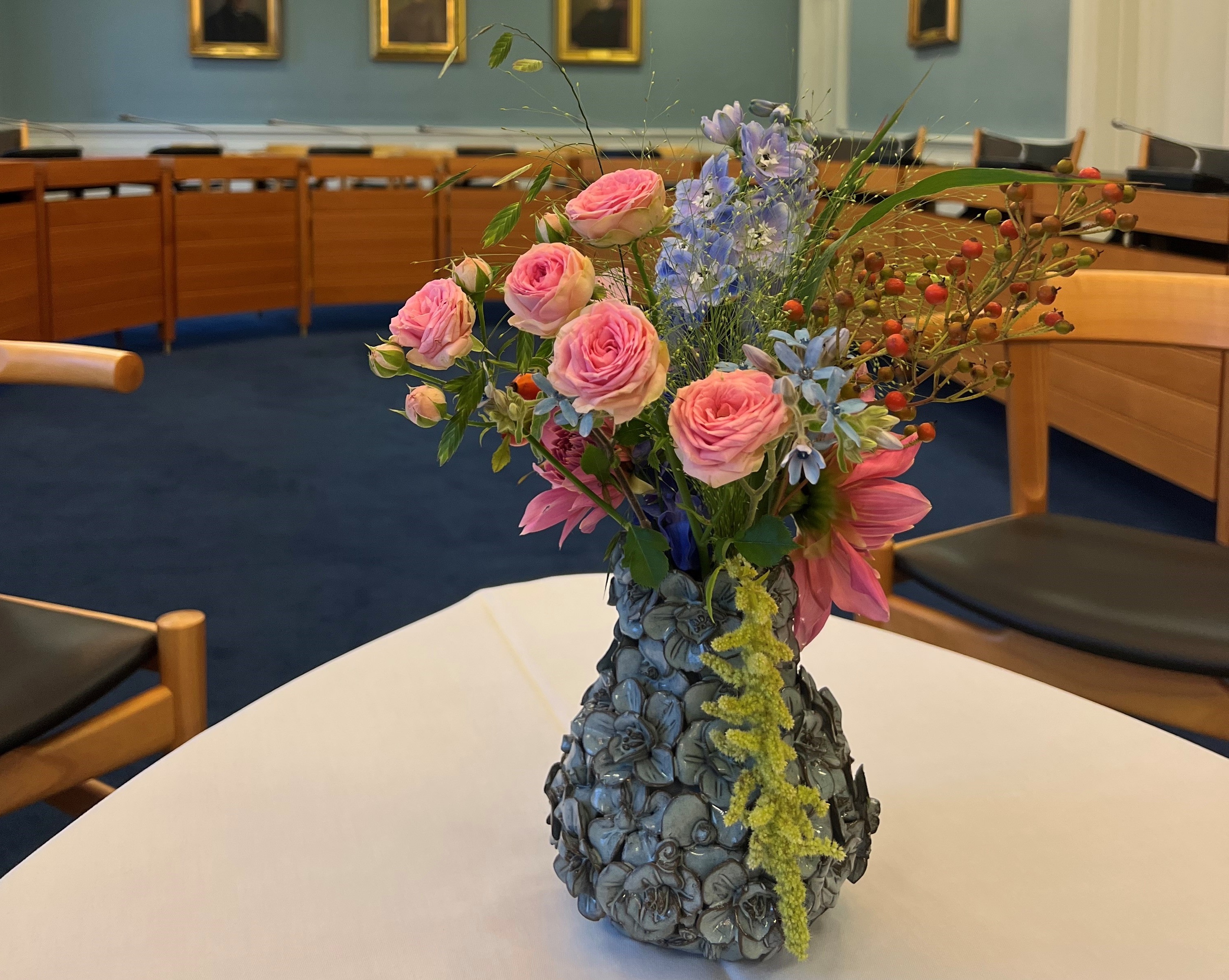 Ideen fra Feen har leveret blomsterarrangementer til Det Gamle Rådhus i anledning af H.M. Dronningens besøg.
