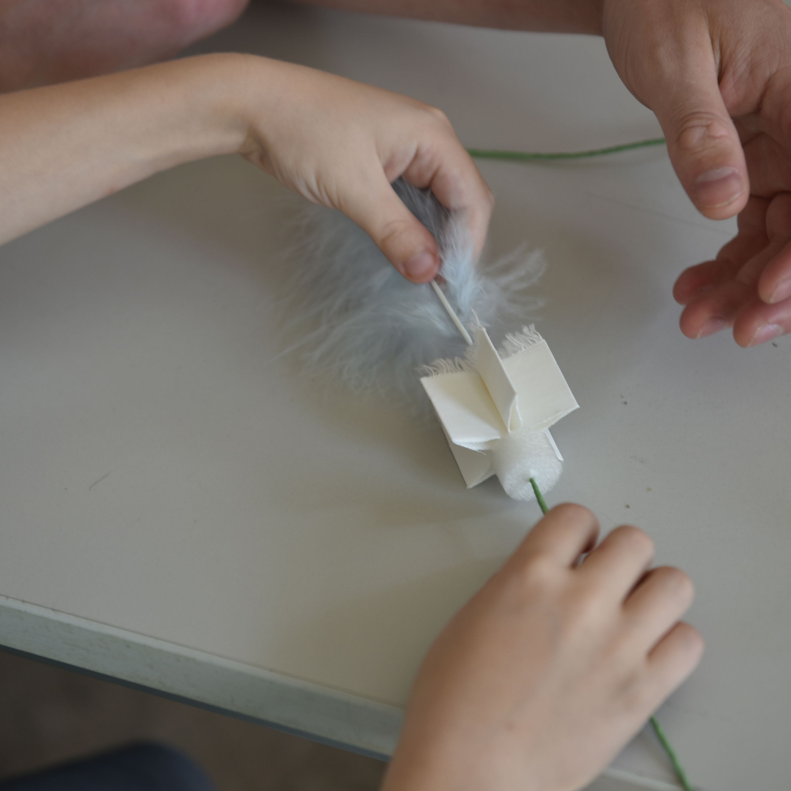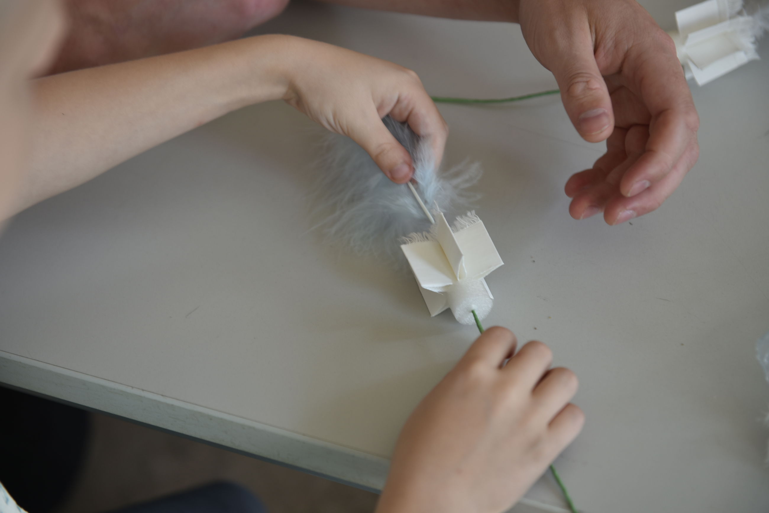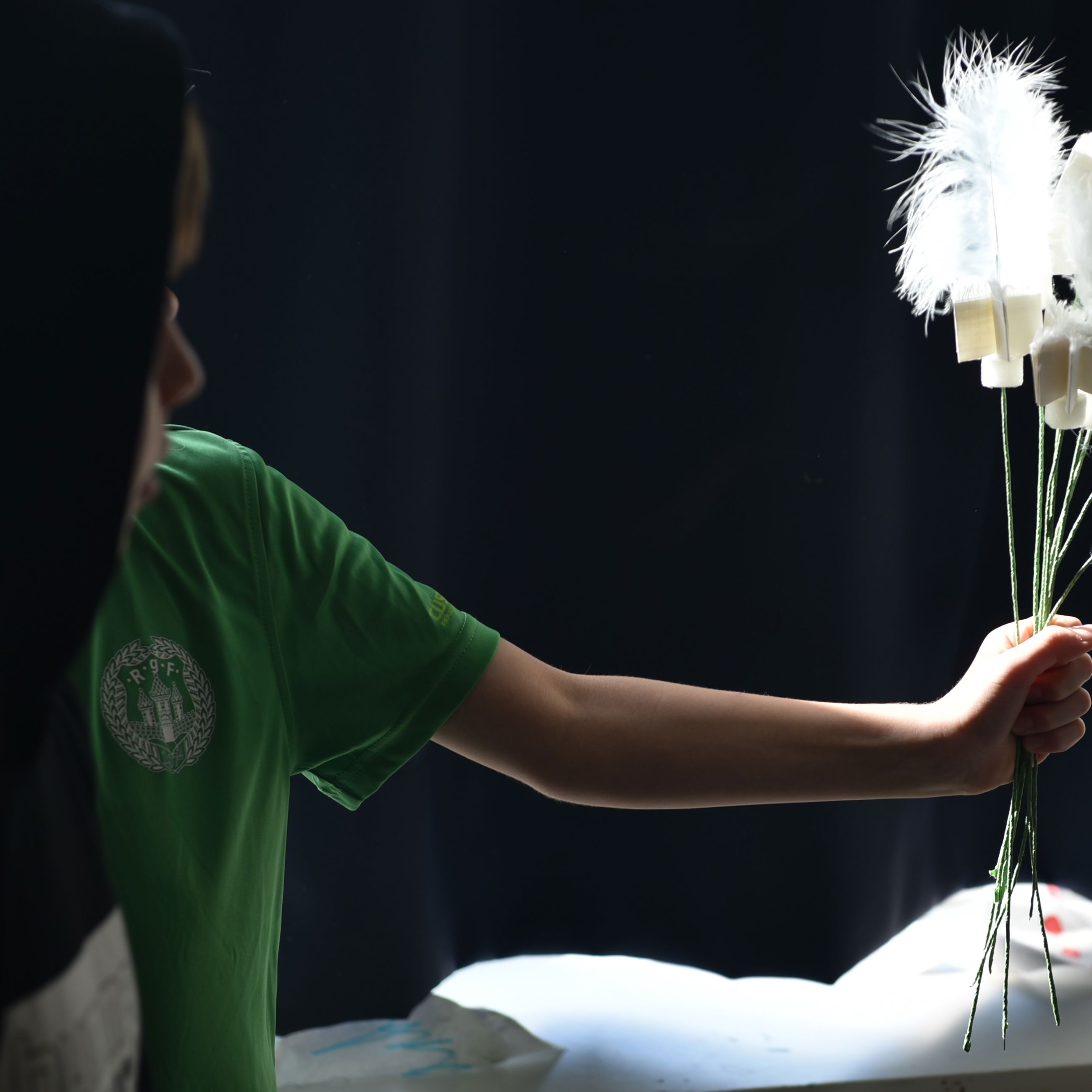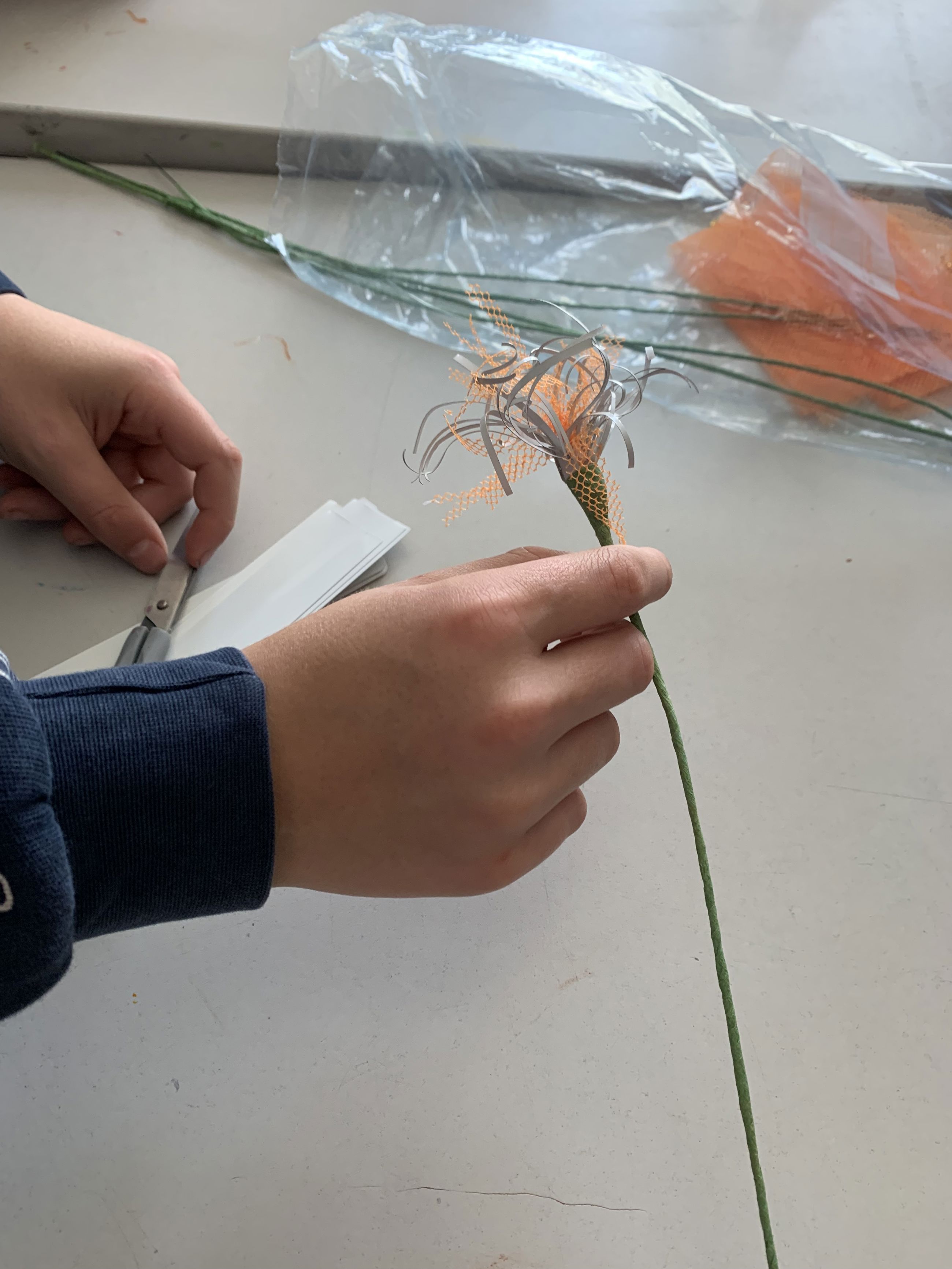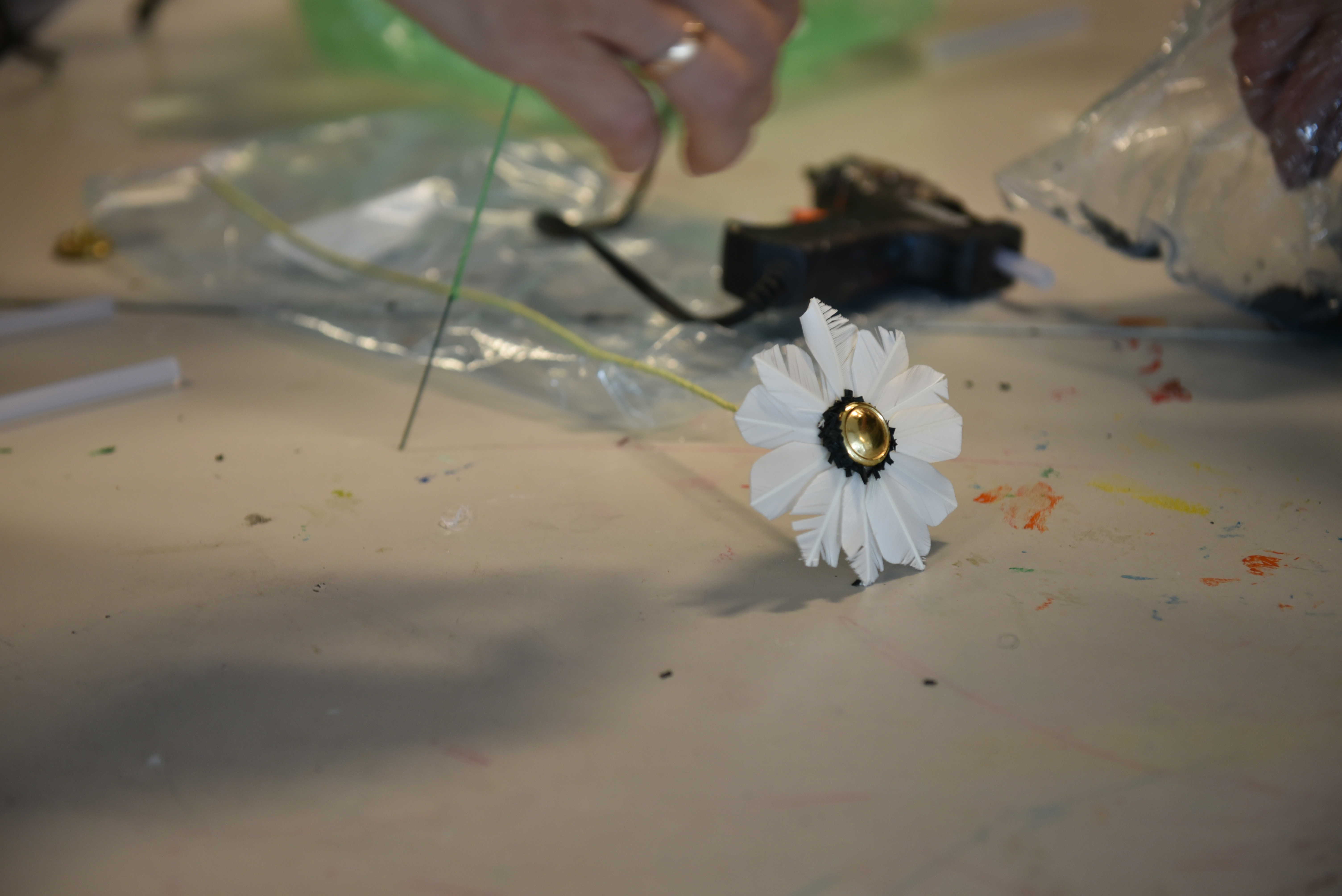 Igennem de sidste måneder har både kunstelever og skoleever deltaget i workshops, hvor der er skabt ReMida-blomster ud af genbrugsmaterialer.