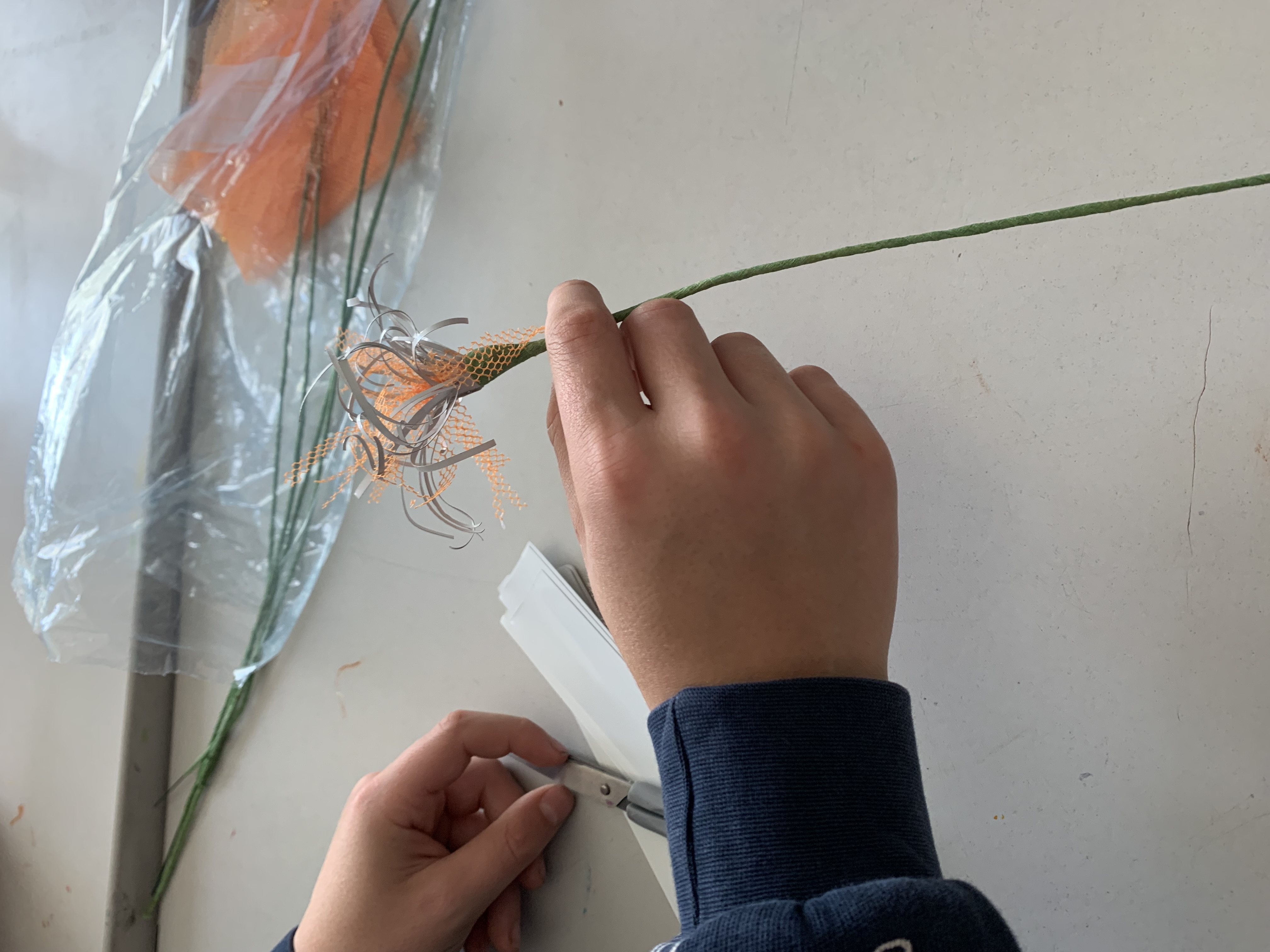 Igennem de sidste måneder har både kunstelever og skoleever deltaget i workshops, hvor der er skabt ReMida-blomster ud af genbrugsmaterialer.